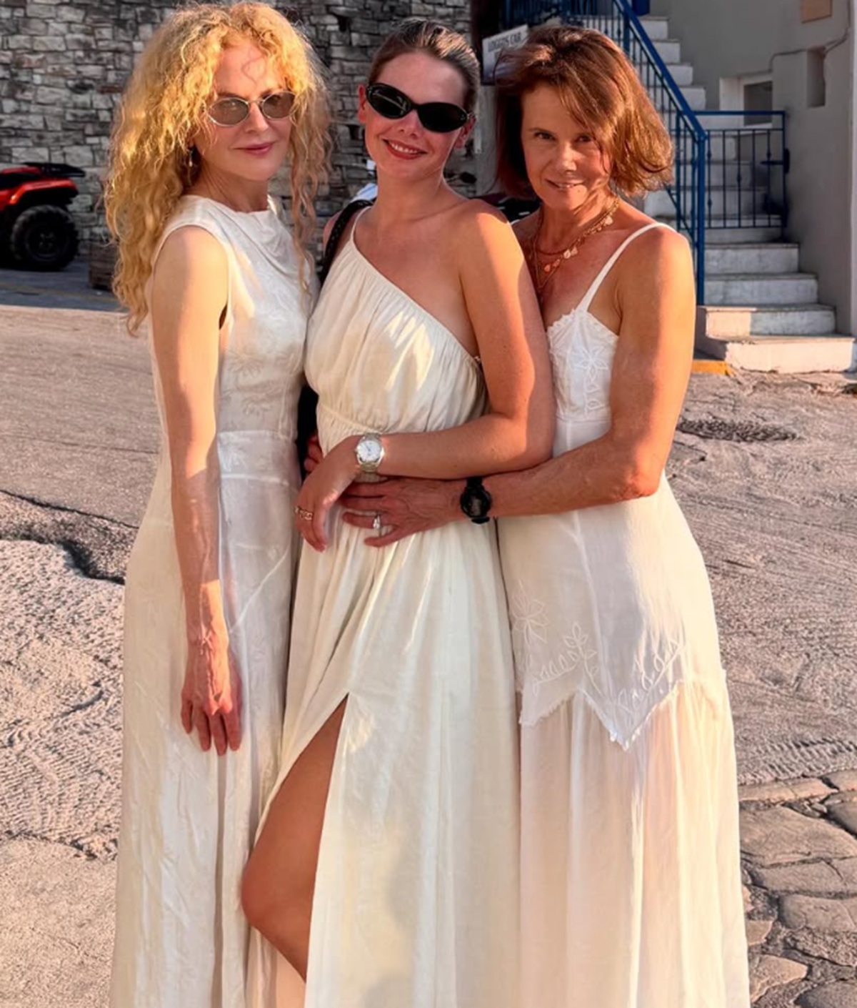 Σε ένα από τα στιγμιότυπα, η Νικόλ Κίντμαν εμφανίζεται χαλαρή και φυσική, φορώντας λευκό φόρεμα και αφήνοντας τα σγουρά μαλλιά της ελεύθερα.