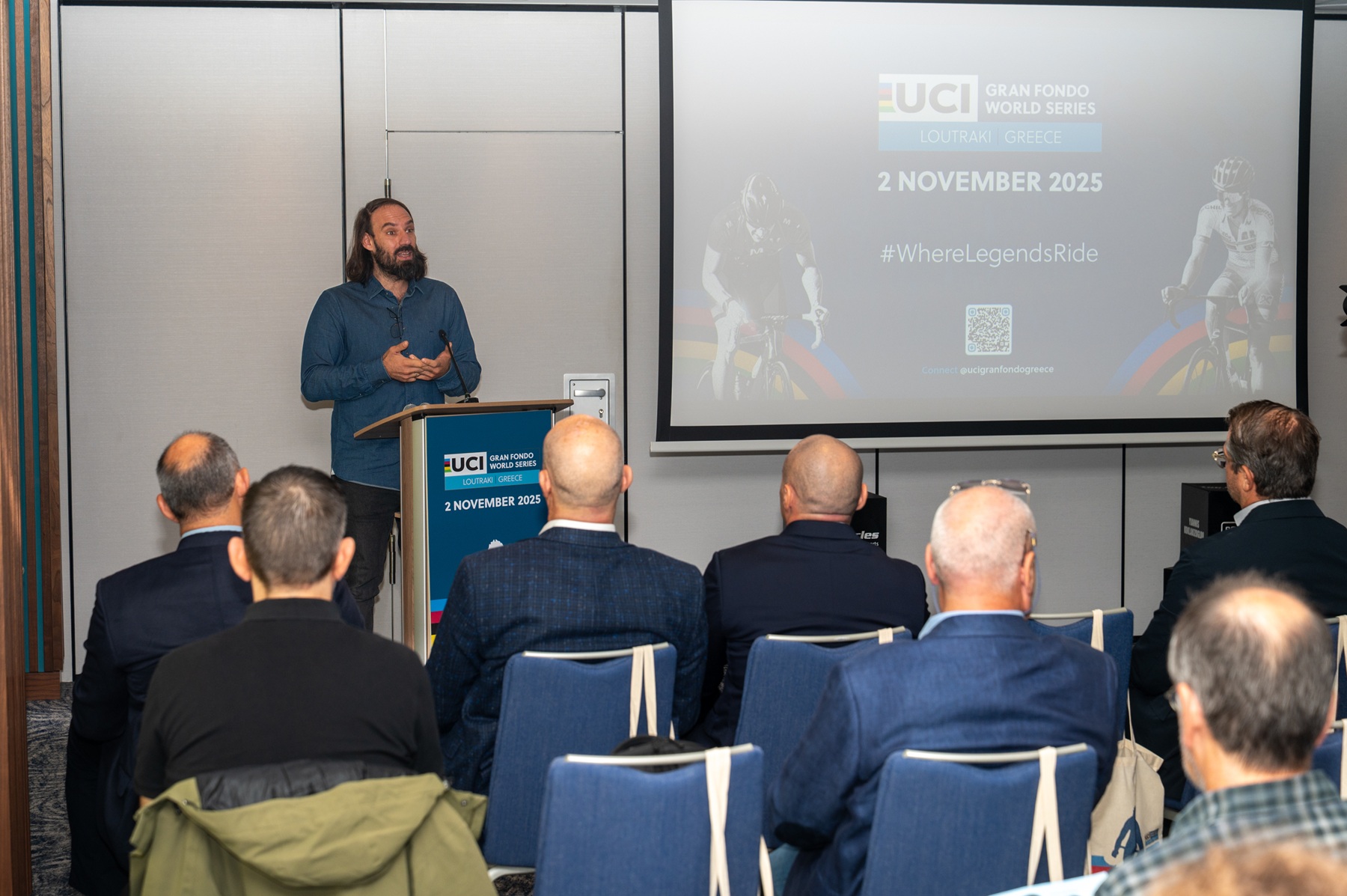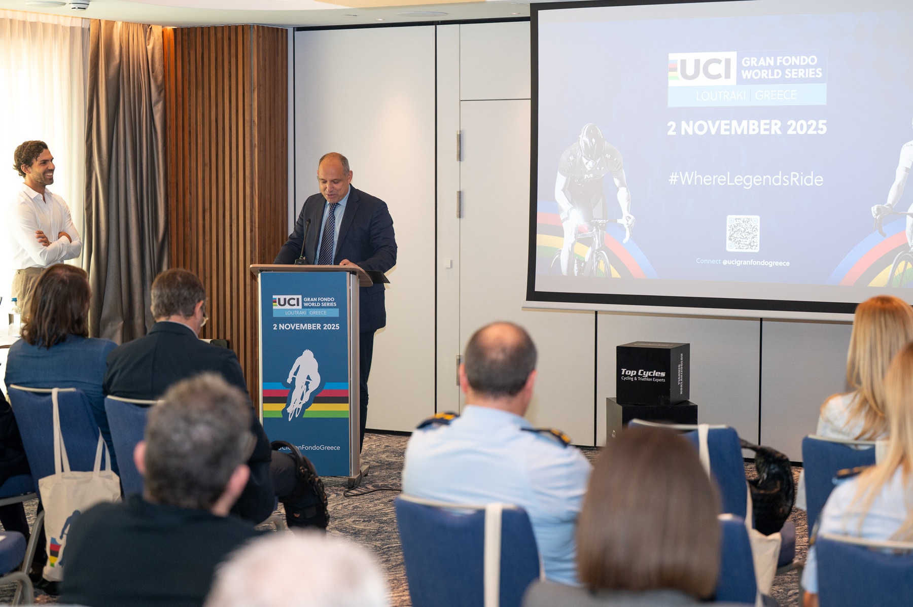 O Race Director του UCI Gran Fondo Greece Βλαδίμηρος Πέτσας ανέλυσε τις τεχνικές λεπτομέρειες του αγώνα, ενώ στάθηκε ιδιαίτερα στα θέματα της ασφάλειας του αγώνα και στην ικανοποίηση των συμμετεχόντων.