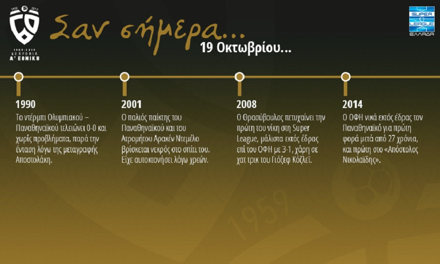 1990. τΙΑν και το πρωτάθλημα βρίσκεται στην 5ηαγωνιστική, η μετακίνηση του Στράτου Αποστολάκη από τον Ολυμπιακό στον Παναθηναϊκό το καλοκαίρι, έχει δημιουργήσει αναταραχή. Η ΕΠΑΕ ορίζει το ντέρμπι στο «Γεώργιος Καραϊσκάκης» Παρασκευή βράδι για λόγους ασφαλείας. Παναθηναϊκός και Αποστολάκης αποδοκιμάζονται, ενώ το ντέρμπι κυλάει αδιάφορα κα χωρίς φάσεις για να τελειώσει 0-0.