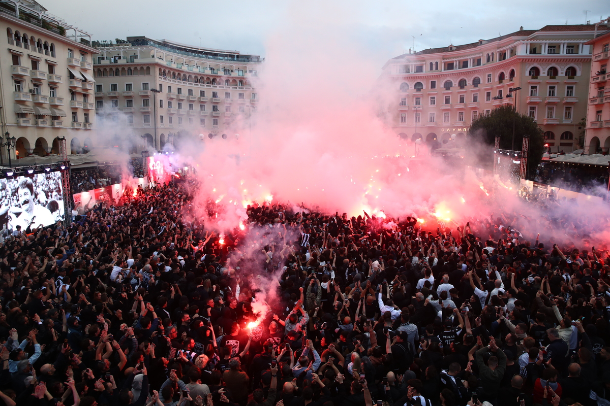 Στην αποκορύφωσή τους φτάνουν οι εκδηλώσεις για τα 100 χρόνια ζωής του ΠΑΟΚ, με την πλατεία Αριστοτέλους να αποτελεί σημείο αναφοράς για το γεγονός, από νωρίς το πρωί, στη Θεσσαλονίκη.