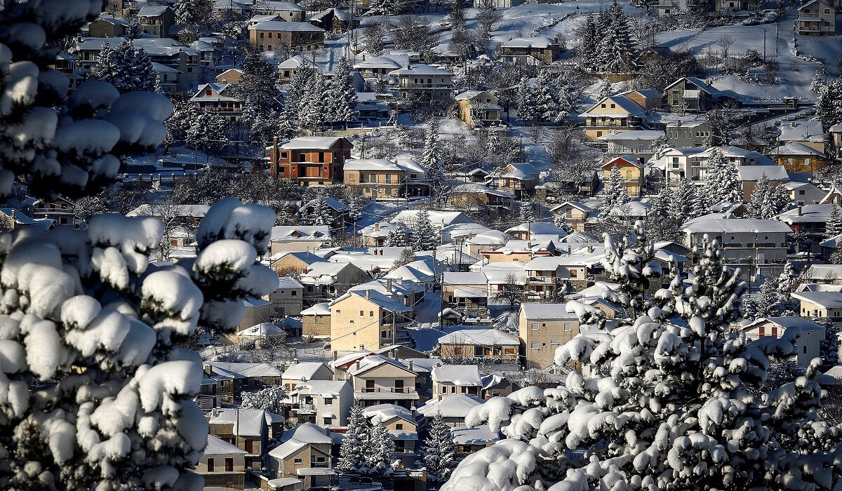 Η εικόνα από την κάμερα καιρού στο Μαυρολιθάρι Φωκίδας στην Οίτη, δείχνει το χιονισμένο τοπίο με την κορυφή της Γκιώνας να δεσπόζει ολόλευκη στο φόντο.