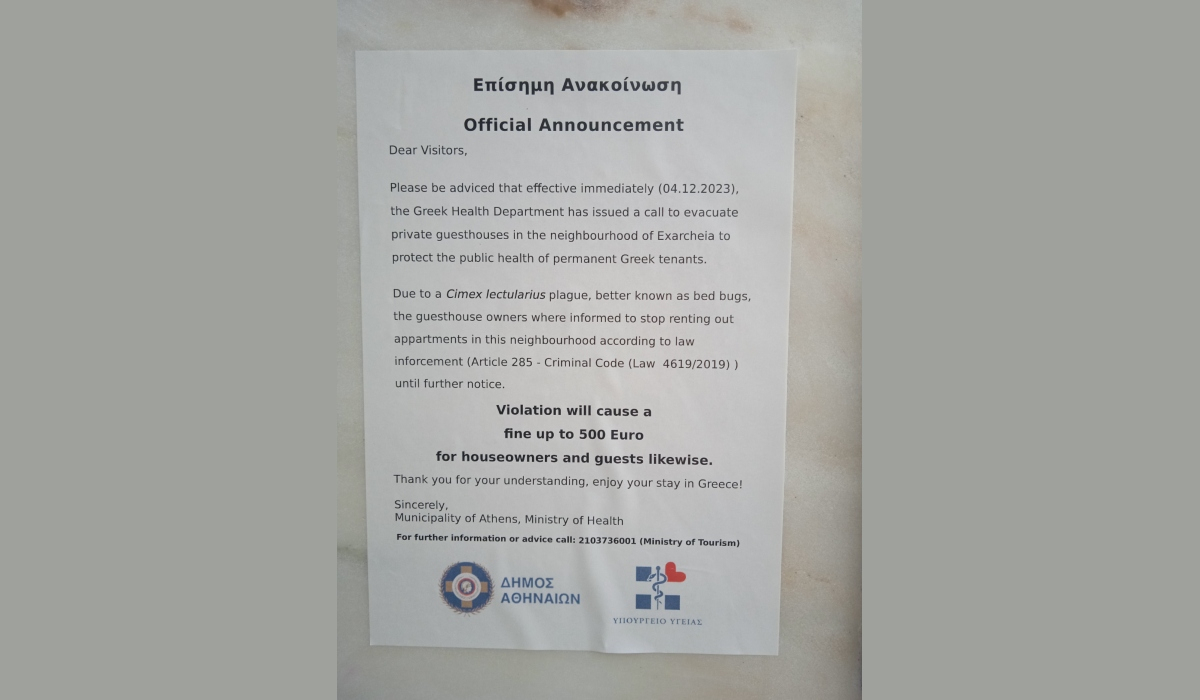 Μάλιστα, η ανακοίνωση έφερε τα λογότυπα του δήμου Αθηναίων και του υπουργείου Υγείας, γεγονός που προκάλεσε αναστάτωση στους κατοίκους.