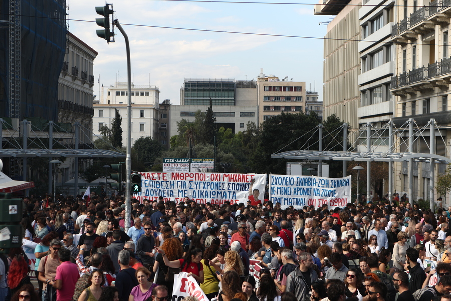 Το κέντρο της Αθήνας γέμισε με διαδηλωτές, ενώ ανάλογες συγκεντρώσεις πραγματοποιούνται σε πολλές πόλεις της Ελλάδας.