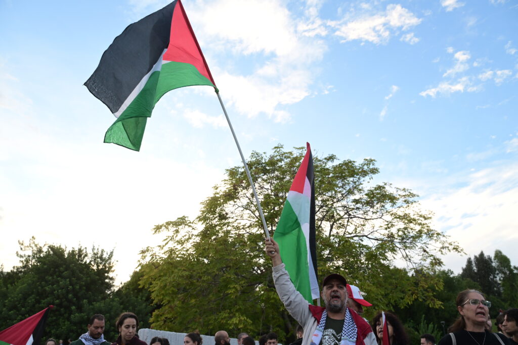 Πλήθος κόσμου συγκεντρώθηκε στο Πάρκο Ελευθερίας προκειμένου να συμπαρασταθούν στους ακτιβιστές που κρατούνται από τις ισραηλινές δυνάμεις, ενώ θα ακολουθήσει πορεία στην Ισραηλινή πρεσβεία.