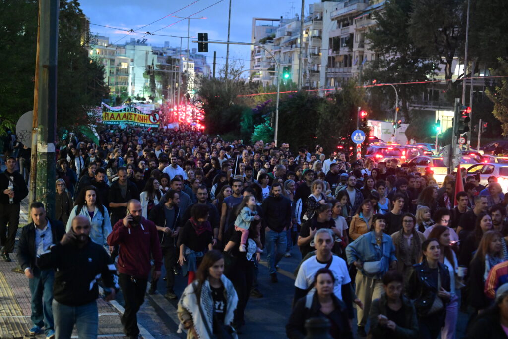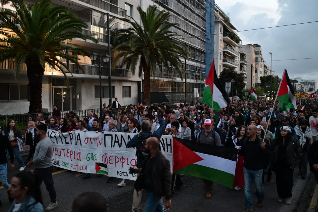Νέα συγκέντρωση διαμαρτυρίας και πορεία πραγματοποιείται στην Αθήνα, με αφορμή το ρεσάλτο του Ισραήλ στον στολίσκο αλληλεγγύης για τη Γάζα και την κράτηση των συμμετεχόντων, ανάμεσά τους και 27 Έλληνες.