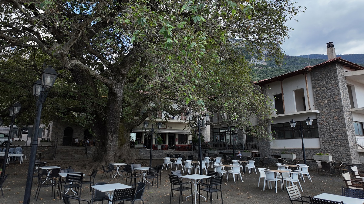 Η καρδιά του χωριού χτυπά στη μεγάλη κεντρική πλατεία, κάτω από τον αιωνόβιο πλάτανο. Το ομώνυμο καφενείο αποτελεί σημείο συνάντησης και ξεκούρασης: λίγο ελληνικό καφέ ή τσάι Παρνασσού, λίγο γλυκό του κουταλιού ή ακόμη και λίγο τοπικό τσίπουρο.