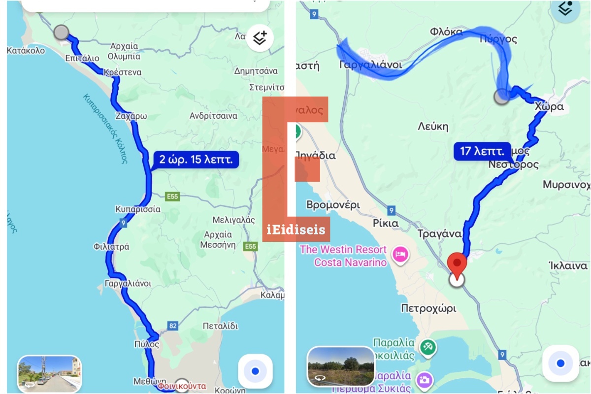 Ενδιαφέρον είναι ότι στο Κορυφάσι Μεσσηνίας ο οδηγός της μηχανής επιλέγει να μη συνεχίσει ευθεία τη διαδρομή που οδηγεί προς τους Γαργαλιάνους αλλά να στρίψει δεξιά προς τη Χώρα του Δήμου Νέστορος. Κάνει δηλαδή μία παράκαμψη και στη συνέχεια από εκεί, δηλαδή από τη Χώρα του Δήμου Νέστορος, συνεχίζει μέσα από τα χωριά και καταλήγει από την πίσω πλευρά στους Γαργαλιάνους. Κατόπιν, συνεχίζει την παραλιακή διαδρομή μέχρι που φτάνει στη Ζαχάρω Ηλείας.