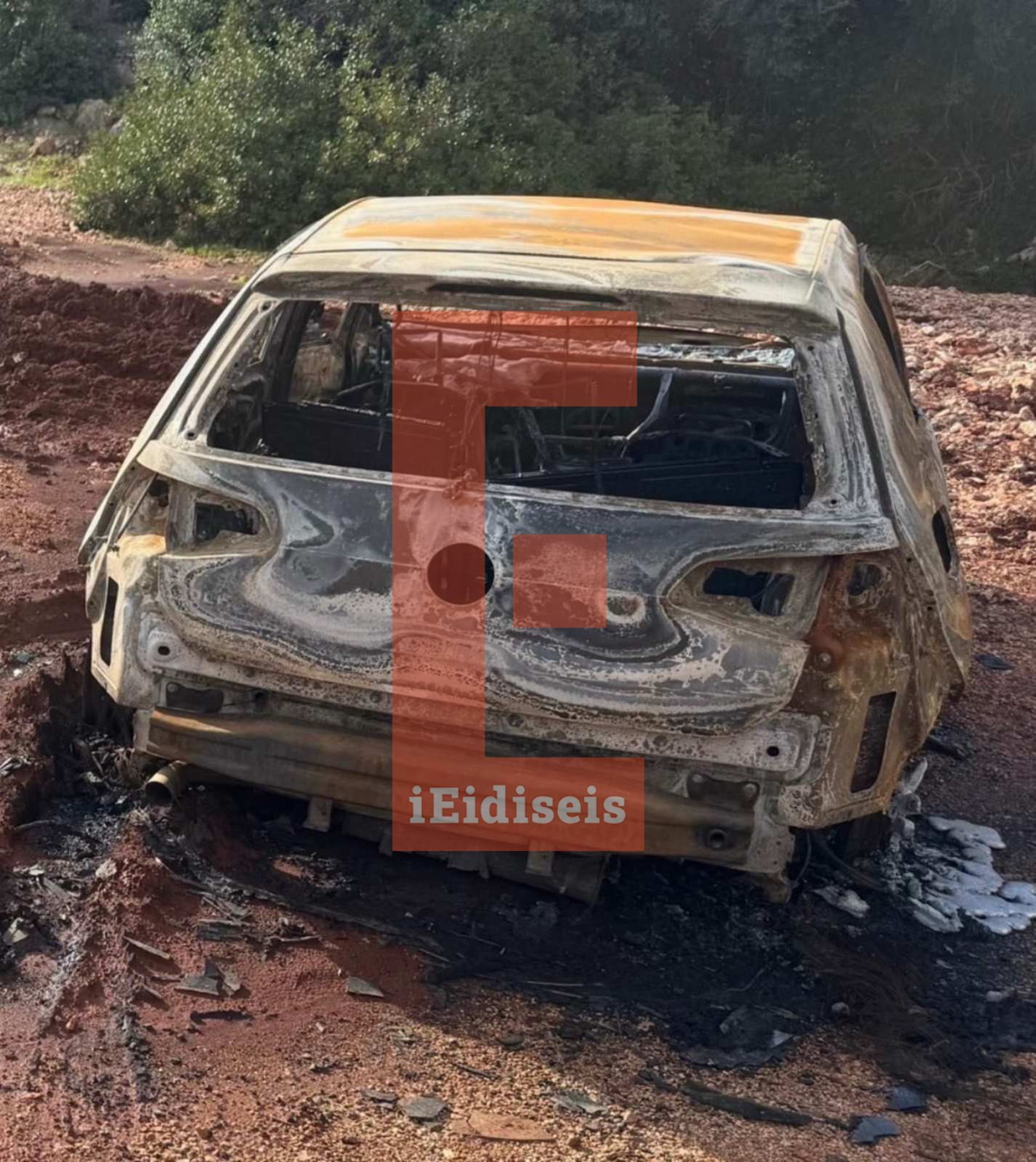 Φωτογραφία-ντοκουμέντο από το καμένο όχημα των απαγωγέων του 27χρονου που απήχθη και δολοφονήθηκε στη Νέα Πέραμο, παρουσιάζει το iEidiseis.gr.