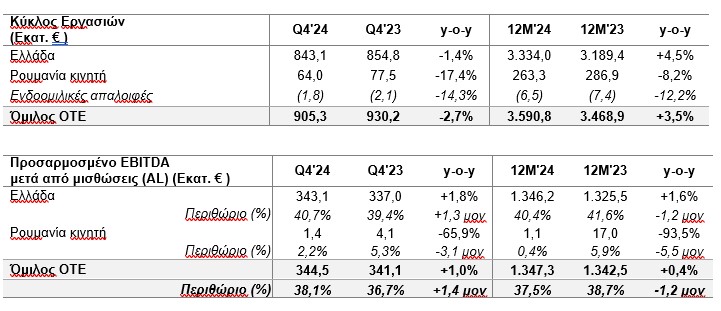 Αναλυτικά τα οικονομικά αποτελέσματα του Ομίλου ΟΤΕ για το δ’ τρίμηνο 2024