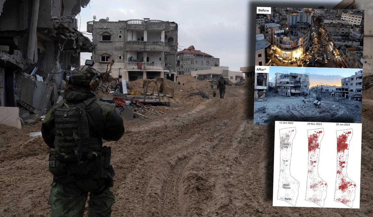 Οι δορυφορικές εικόνες, που ανέλυσαν ο Κόρι Σερ του City University της Νέας Υόρκης και ο Τζέιμον Βαν Ντεν Χουκ του Oregon State University, πιστοποιούν επίσης ότι οι βομβαρδισμοί στο νότιο και στο κεντρικό τμήμα της Λωρίδας της Γάζας κλιμακώθηκαν από τις αρχές Δεκεμβρίου.
