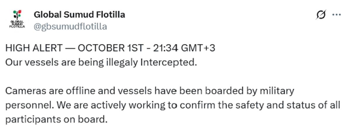 — Global Sumud Flotilla Commentary (@GlobalSumudF) October 1, 2025