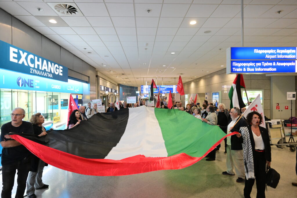 Σε κλίμα συγκίνησης και αλληλεγγύης, δεκάδες άνθρωποι με πανό και παλαιστινιακές σημαίες υποδέχτηκαν τους 27 Έλληνες της αποστολής Global Sumud Flotilla, που γύρισαν στην Αθήνα μετά από τρεις μέρες κράτησης στο Ισραήλ.