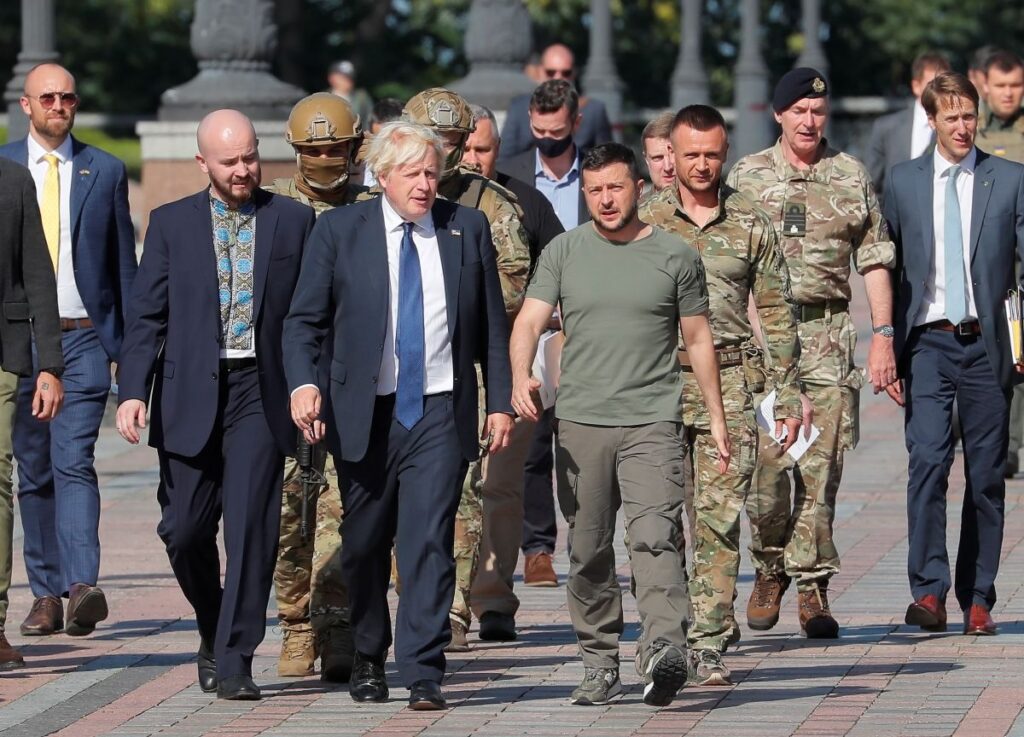 Στην Ντάουνινγκ Στριτ, ο Τζόνσον συσπείρωσε τις δυτικές δυνάμεις κατά τη ρωσική εισβολή στην Ουκρανία τον Φεβρουάριο του 2022. Από την παραίτησή του, συνεχίζει να ταξιδεύει εκεί, και παραμένει τόσο δημοφιλής που τον επευφημούν στους δρόμους του Κιέβου.