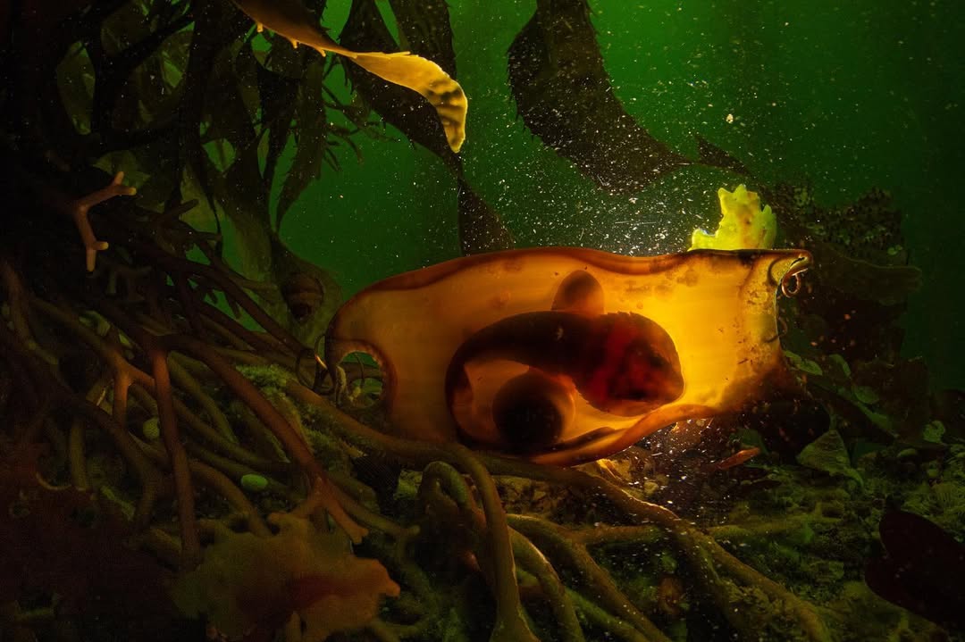 Για την κατηγορία των υποθαλάσσιων φωτογραφιών, βλέπουμε ένα έμβρυο καρχαρία μέσα στο αυγό του.
