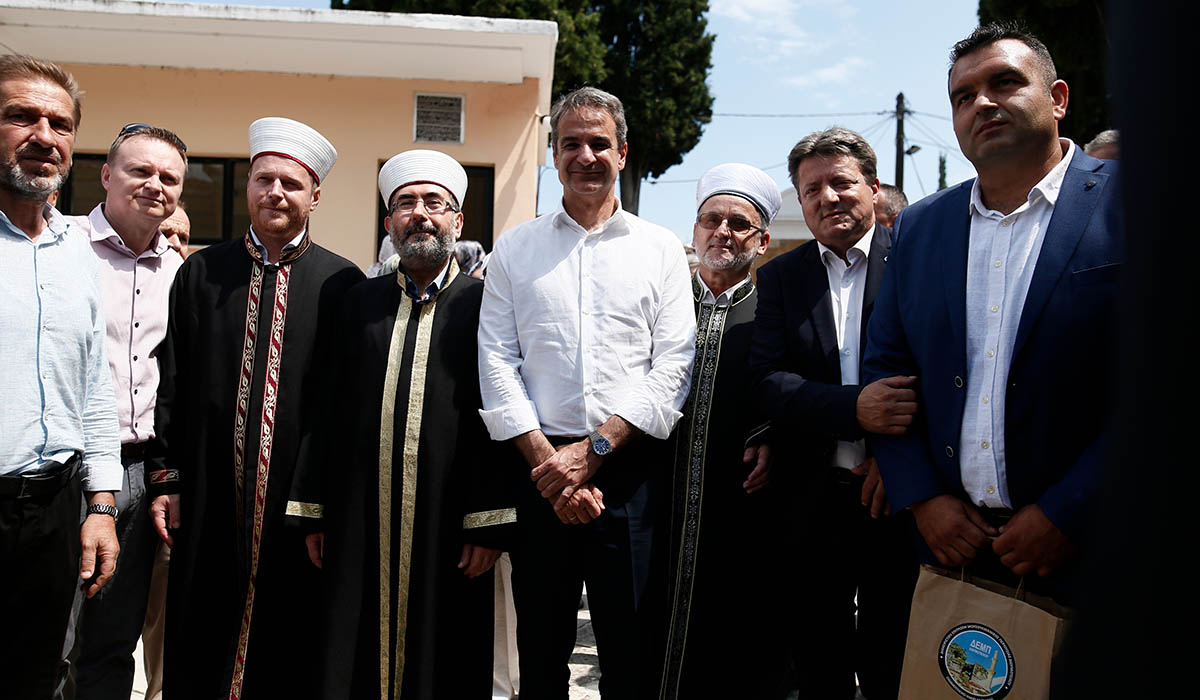 Με εκπροσώπους της μουσουλμανικής μειονότητας Θράκης συναντήθηκε ο Κυριάκος Μητσοτάκης έξω από το Γενί τζαμί Κομοτηνής, στον προαύλειο χώρο της Μουφτείας και της Διαχειριστικής Επιτροπής, στη διάρκεια περιοδείας του στο κέντρο της πόλης, και τους ευχήθηκε για τη μεγάλη γιορτή, το Κουρμπάν Μπαιράμ, που αρχίζει αύριο.