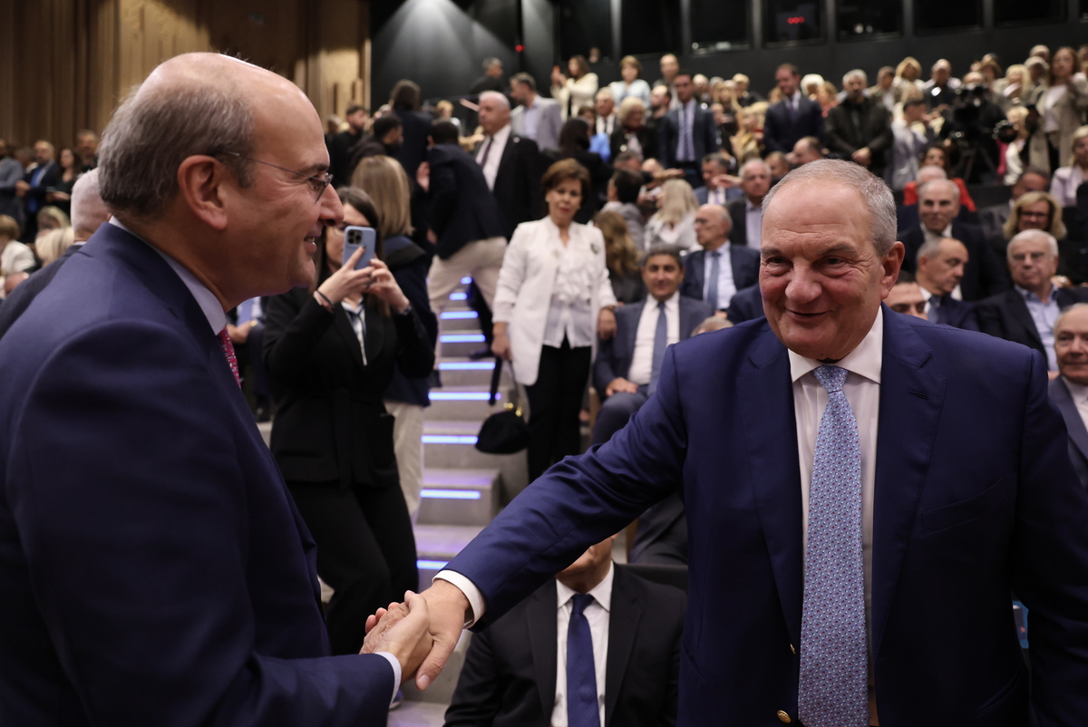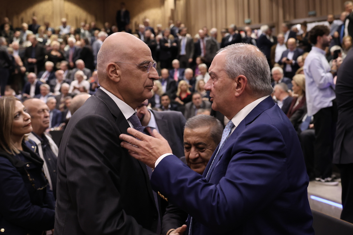 Ο υπουργός Άμυνας Νίκος δενδιας κάθισε ανάμεσα στον υπουργό υγείας Άδωνι Γεωργιάδη, με τον οποίο μάλιστα κατεγράφη να συνομιλεί στον απόηχο της πρόσφατης έμμεσης κόντρας τους για την υπόθεση Ρούτσι και τον επίτροπο Απόστολο Τζιτζικώστα.