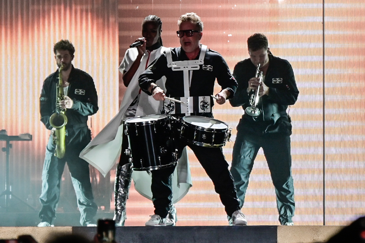 Ο δημοφιλής τραγουδιστής και συνθέτης εμφανίστηκε στη σκηνή με χαλαρό outfit, φορώντας ένα κόκκινο μπλουζάκι και κόκκινο παντελόνι.